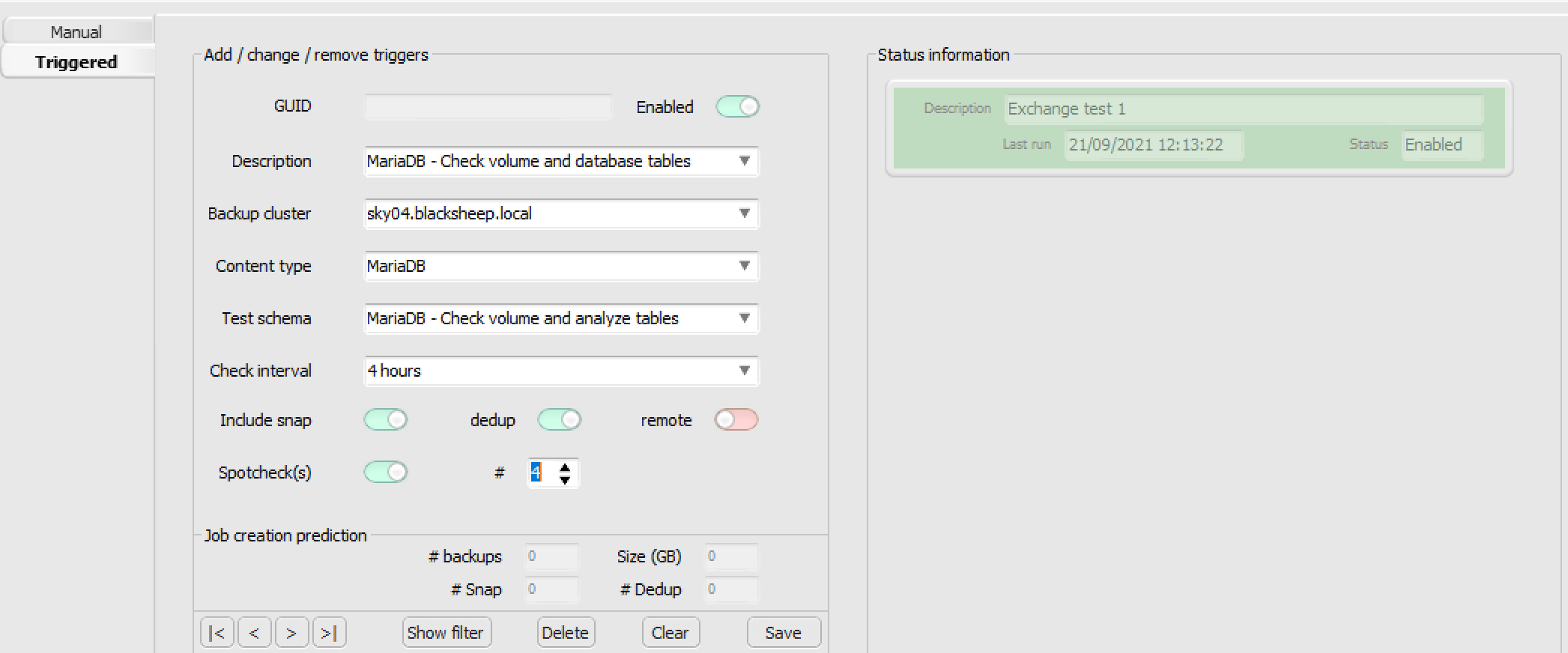 When backup data validation has to be a continuous process, restAssured offers the option to create "triggered" test jobs. The only difference with a manual test job is that a "triggered" test job activates automatically based on a configured interval. Each time the job is activated a scan of the current backups will be executed and all applicable backups will be added to the queue for validation testing. Combined with the alerting functionality it provides businesses the information needed to swiftly respond whenever data integrity issues are found in backups.